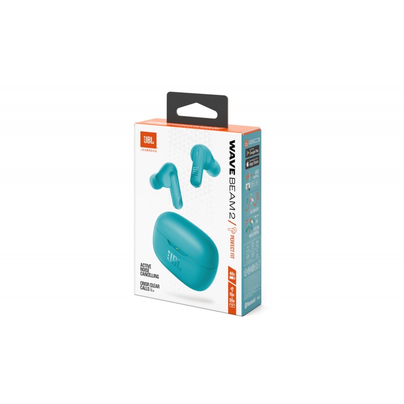 JBL Wave Beam 2 Turquoise In-ear Bluetooth Handsfree Ακουστικά με Αντοχή στον Ιδρώτα και Θήκη Φόρτισης *