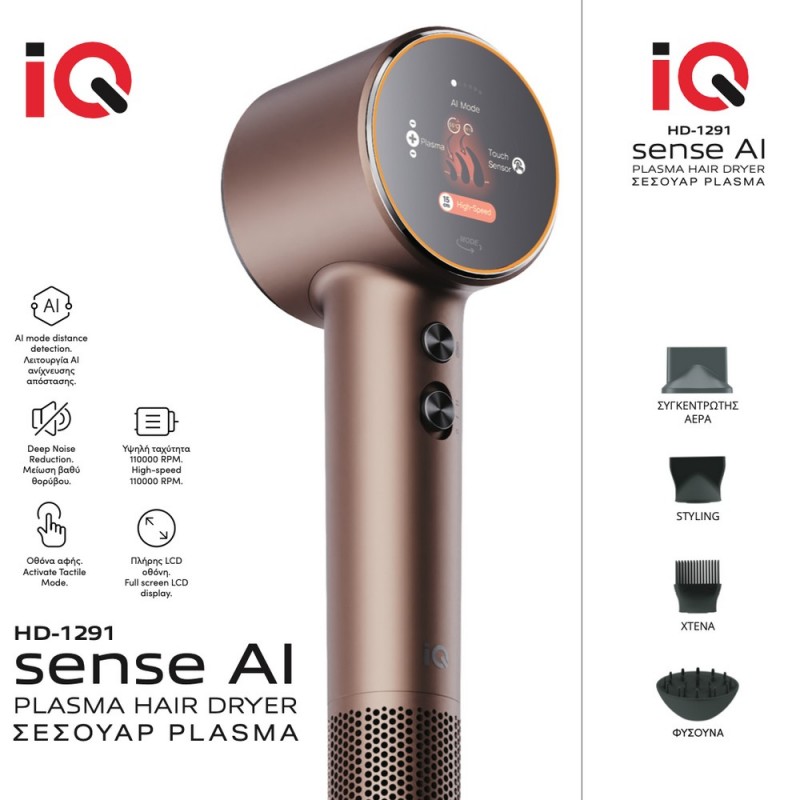 το νέο καινοτόμο προϊόν IQ HD-1291 SENSE AI - NEW HAIR DRYER ,ΣΕΣΟΥΑΡ ΜΕ ΤΕΧΝΟΛΟΓΙΑ AI διαθέτει: