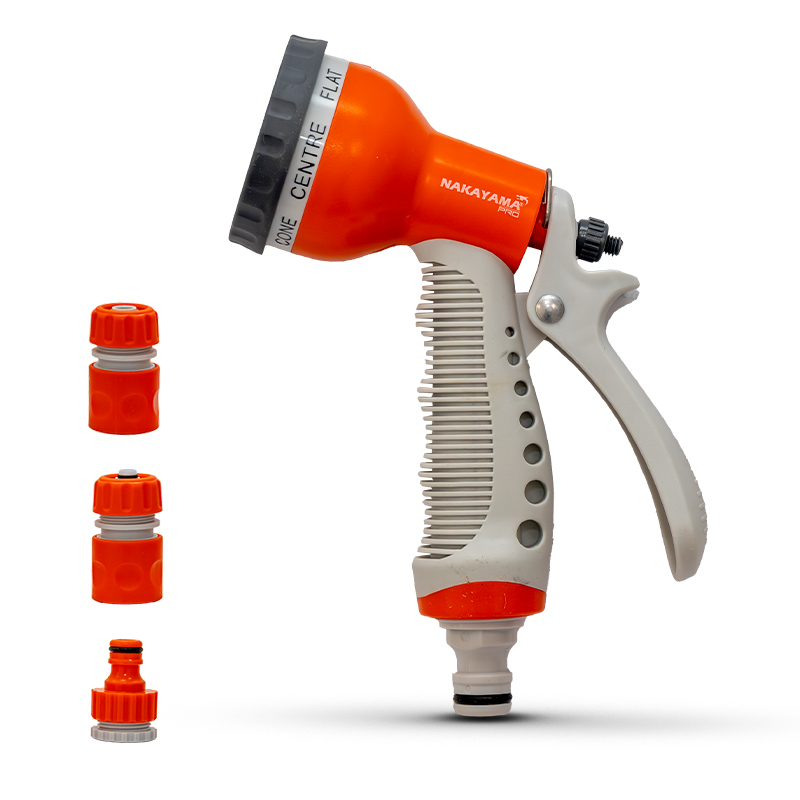 NAKAYAMA Pro GH9216 Σετ Ποτίσματος 4τεμ,Πιστόλι Νερού 7 Ρυθμίσεων,με Ταχυσύνδεσμο με Στοπ & Ρακόρ