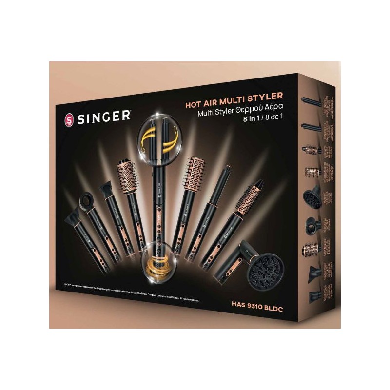 Singer HAS 9310 Multi Styler Βουρτσα Μαλλιών 8 σε 1 με αέρα 1400W BLDC