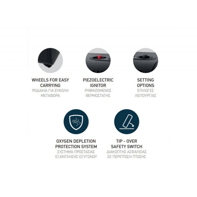 H:650mm / Χώρος για τη φιάλη (15kg): Δ: 380mm